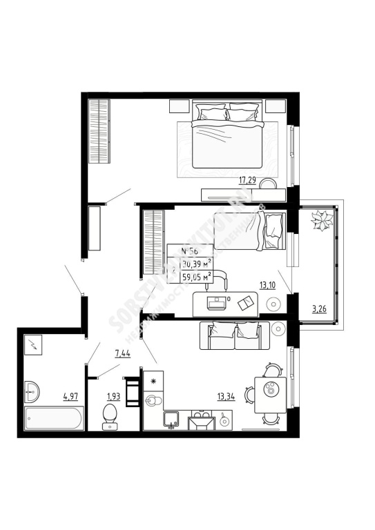 Продается 2-комн. квартира, площадью 59.03 м2 в малоэтажной в монолитной новостройке в 20 мин. транспортом от м. Проспект Ветеранов. Возможен вариант покупки с использованием ипотечных средств, есть рассрочка, возможна покупка с использованием материнского капитала.