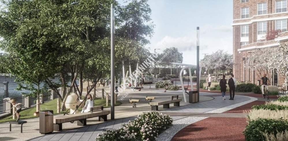 На противоположном разместилось современное общественное пространство с зонами отдыха у воды, игровыми площадками для детей разного возраста и зонами отдыха для взрослых. [#4151201#]