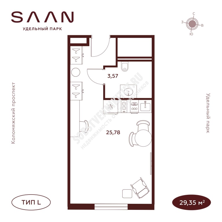 Продается студия, площадью 29.35 м2 в монолитно-кирпичной новостройке, район города - Приморский.